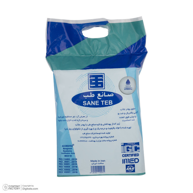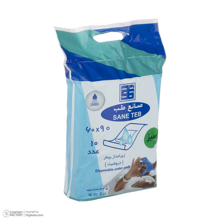 زیر انداز بیمار آنتی باکتریال و ضد بو و حساسیت سایز 60x90 سانتی متر تعداد در بسته 10 عدد با پودر جاذب و قدرت جذب بالا