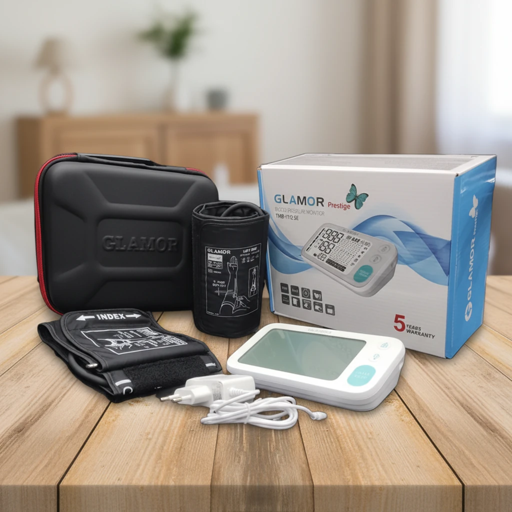 فشارسنج بازویی TMB-1112 SE یکی از جدیدترین محصولات برند گلامور می باشد که امکانات جذابی همچون قابلیت اتصال به گوشی تلفن همراه را به محصولات این برند اضافه کرده است. طراحی مدرن و زیبای این محصول در کنار دقت بسیار بالا، این فشارسنج را تبدیل به یک نمونه موفق در جذب مخاطب نموده است. این محصول بر اساس معیارهای سازمان بهداشت جهانی WHO فشار خون شما را اندازه گیری کرده و همچنین ضربان نامنظم را تشخیص می دهد. همانطور که ممکن است بدانید، تکان خوردن و صحبت کردن در هنگام اندازه گیری فشار خون باعث می شود تا دقت نتیجه اندازه گیری پایین بیاید ولی این محصول قادر است این موارد را تشخیص داده و به کاربر اخطار دهد تا اندازه گیری دقیق تر گردد. این دستگاه همچنین دارای حافظه می باشد و تا 250 بار فشار خون را ذخیره می کند و همچنین قابلیت اتصال به گوشی های اندروید و آیفون را داراست. با وجود این امکانات گلامور TMB-1112 SE یک انتخاب مناسب برای استفاده در منزل، مطب یا کلینیک های پزشکی می باشد.